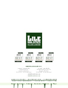LILE REAL ESTATE, INC. Arkansas - Corporate Office 401 Autumn Road Little Rock, AR 72211 501.374.3411 501.374.0609 (fax) Tennessee - Regional Office 5521 Murray Avenue, Suite 110 Memphis, TN 38119 901.260.4580 901.260.4582 (fax) info@lilerealestate.com www.lilerealestate.com L i c e n s e d i n A r k a n s a s , L o u i s i a n a , M i s s i s s i p p i , Te n n e s s e e , a n d Te x a s