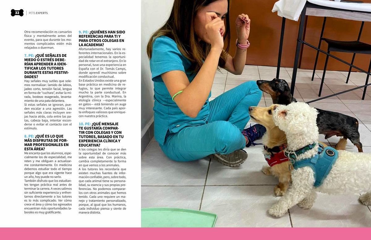 Afortunadamente, hay varios referentes internacionales. En la especialidad tenemos la oportunidad de rotar en el extranjero. En lo personal, tuve una experiencia en España con el Dr. Tomás Camps, donde aprendí muchísimo sobre modificación conductual. En Estados Unidos existe una gran base práctica en medicina de refugios, lo que permite integrar mucho la parte conductual. En Argentina, con la Dra. Marina, la etología clínica— especialmente en gatos— está teniendo un auge muy interesante. Cada país aporta enfoques valiosos que enriquecen nuestra práctica.