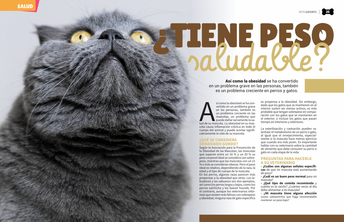 - ¿ Cuáles son algunas señales específicas de que mi mascota está aumentando de peso?- ¿ Cuál es un buen peso normal para mi mascota?- ¿ Qué tipo de comida recomienda y cuánto es la ración? ¿ Cuántas veces al día debo alimentar a mi mascota?- ¿ Mi mascota tiene alguna afección( como osteoartritis) que haga recomendable mantener un peso bajo?