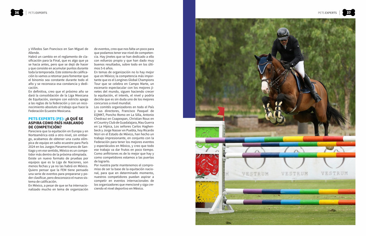 y Viñedos San Francisco en San Miguel de Allende. Habrá un cambio en el reglamento de clasificación para la Final, que es algo que ya se hacia antes, pero que se dejó de hacer y que consiste en acumular puntos durante toda la temporada. Este sistema de calificación lo vamos a retomar para fomentar que el binomio sea constante durante todo el año y se reconozca esa constancia y dedicación. En definitiva, creo que el próximo año se dará la consolidación de la Liga Mexicana de Equitación, siempre con estricto apego a las reglas de la federación y con un reconocimiento absoluto al trabajo que hace la Federación Ecuestre Mexicana.