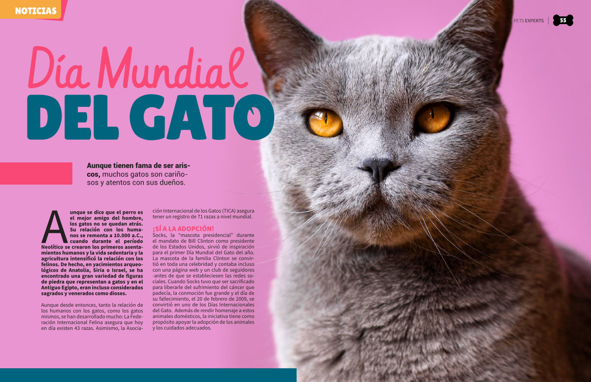 Socks, la“ mascota presidencial” durante el mandato de Bill Clinton como presidente de los Estados Unidos, sirvió de inspiración para el primer Día Mundial del Gato del año. La mascota de la familia Clinton se convirtió en toda una celebridad y contaba incluso con una página web y un club de seguidores-antes de que se estableciesen las redes sociales. Cuando Socks tuvo que ser sacrificado para liberarle del sufrimiento del cáncer que padecía, la conmoción fue grande y el día de su fallecimiento, el 20 de febrero de 2009, se convirtió en uno de los Días Internacionales del Gato. Además de rendir homenaje a estos animales domésticos, la iniciativa tiene como propósito apoyar la adopción de los animales y los cuidados adecuados.