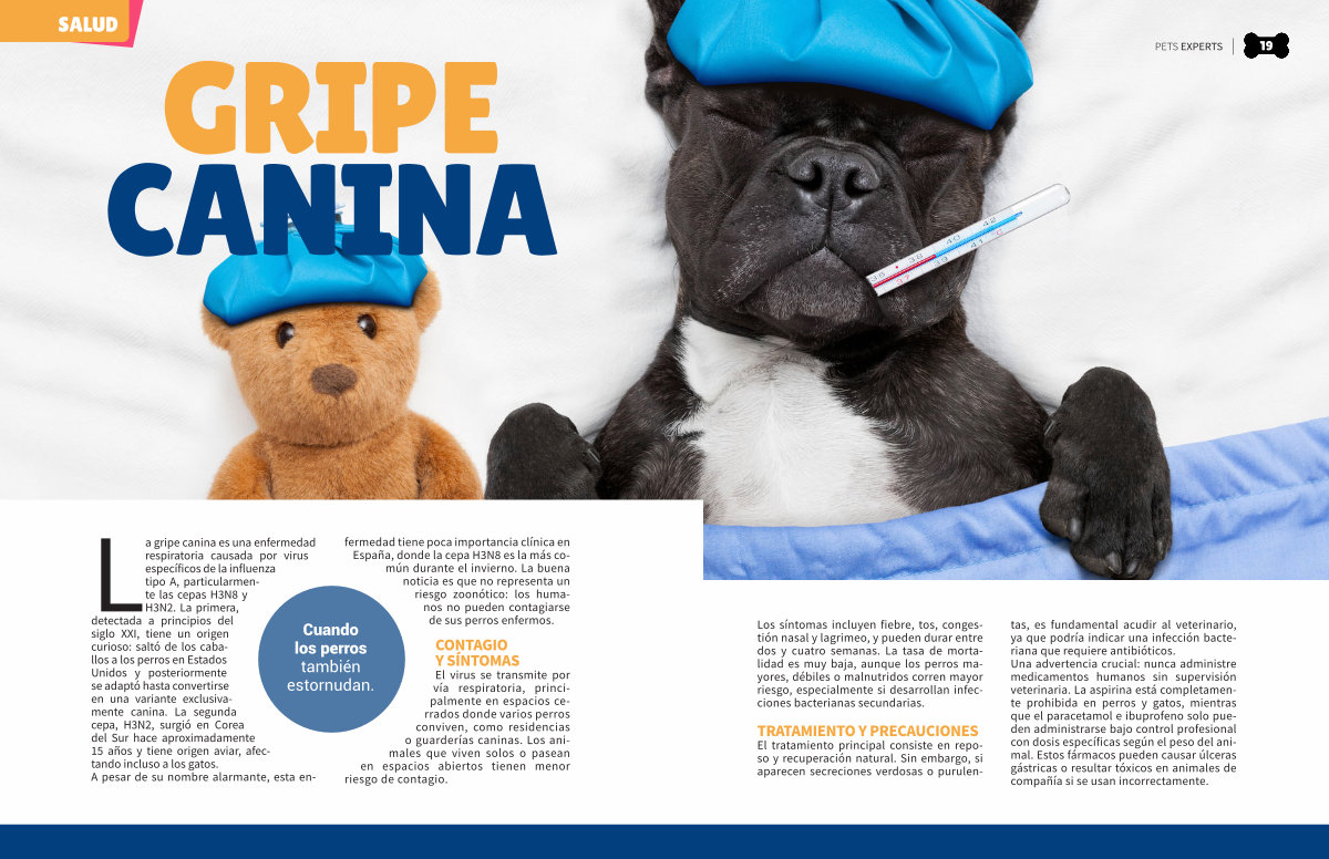 Los síntomas incluyen fiebre, tos, congestión nasal y lagrimeo, y pueden durar entre dos y cuatro semanas. La tasa de mortalidad es muy baja, aunque los perros mayores, débiles o malnutridos corren mayor riesgo, especialmente si desarrollan infecciones bacterianas secundarias.