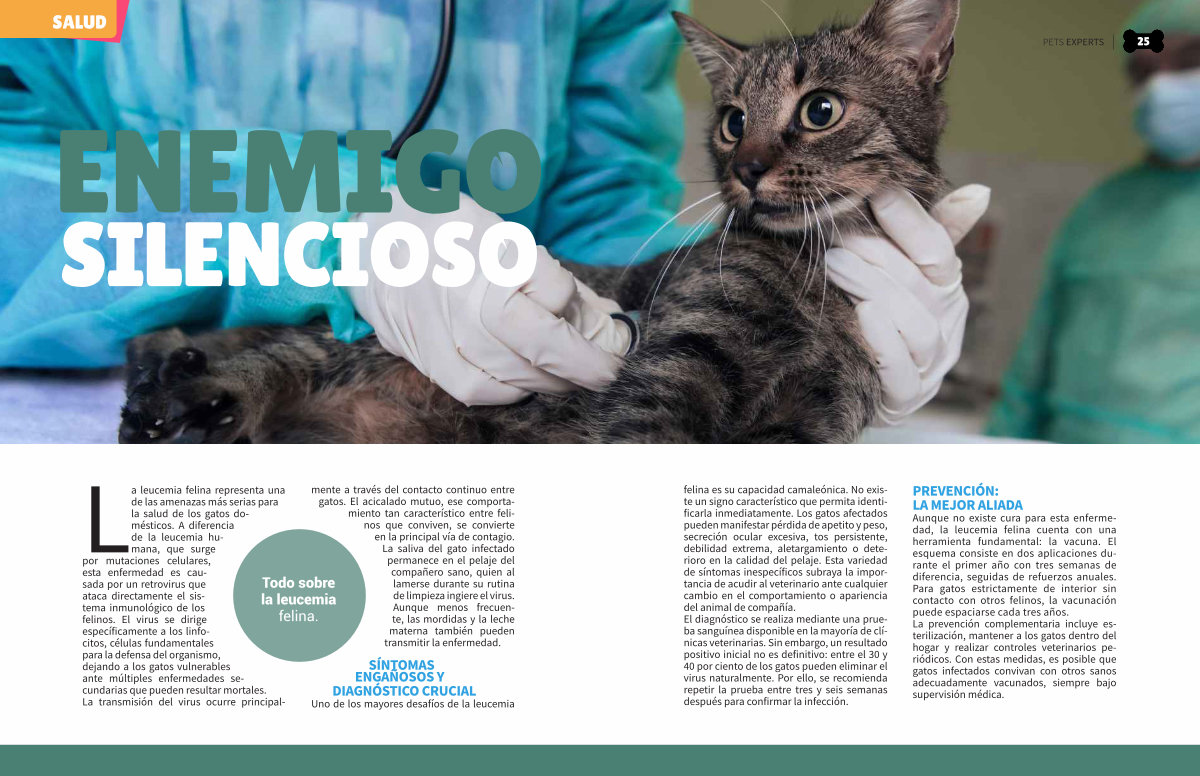 La leucemia felina representa una de las amenazas más serias para la salud de los gatos domésticos. A diferencia de la leucemia humana, que surge por mutaciones celulares, esta enfermedad es causada por un retrovirus que ataca directamente el sistema inmunológico de los felinos. El virus se dirige específicamente a los linfocitos, células fundamentales para la defensa del organismo, dejando a los gatos vulnerables ante múltiples enfermedades secundarias que pueden resultar mortales. La transmisión del virus ocurre principalmente a través del contacto continuo entre gatos. El acicalado mutuo, ese comportamiento tan característico entre felinos que conviven, se convierte en la principal vía de contagio. La saliva del gato infectado permanece en el pelaje del compañero sano, quien al lamerse durante su rutina de limpieza ingiere el virus. Aunque menos frecuente, las mordidas y la leche materna también pueden transmitir la enfermedad.