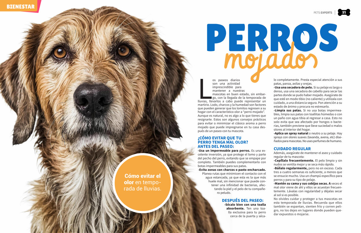 Además, asegúrate de mantener el aseo y cuidado regular de tu mascota:-Cepíllalo frecuentemente. El pelo limpio y sin nudos se ventila mejor y se seca más rápido.-Báñalo regularmente, pero no en exceso. Cada tres a cuatro semanas es suficiente, a menos que se ensucie mucho. Usa un champú específico para perros y para su tipo de pelaje.-Mantén su cama y sus cobijas secas. A veces el mal olor viene de ahí y ellos se acuestan frecuentemente. Lávalas con regularidad y déjalas secar al sol si es posible. No olvides cuidar y proteger a tus mascotas en esta temporada de lluvias. Recuerda que ellos también se espantan, sienten frío y corren peligro, no los dejes en lugares donde pueden quedar expuestos o mojarse.
