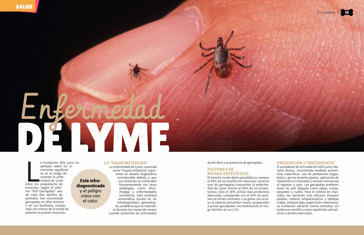 El presidente de la Fundación SOS Lyme, Mariano Bueno, recomienda medidas preventivas específicas: uso de pantalones largos, botas y gorras durante paseos, aplicación de repelentes en mascotas y revisión minuciosa al regresar a casa. Las garrapatas prefieren áreas de piel delgada como patas, orejas, párpados y cuello. Para el control en mascotas, las opciones más eficaces incluyen pipetas, collares antiparasitarios y tabletas orales, siempre bajo supervisión veterinaria. La fundación advierte contra remedios sin evidencia científica como repelentes ultrasónicos o aceites esenciales.