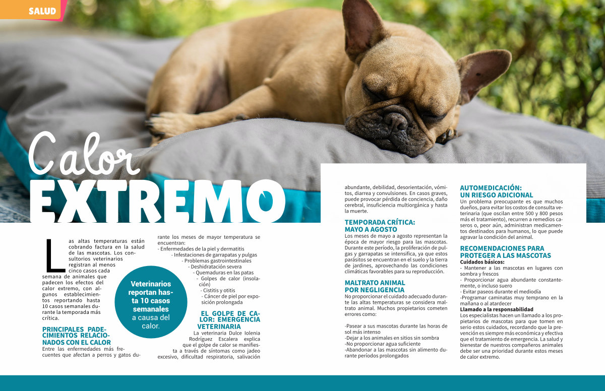 Las altas temperaturas están cobrando factura en la salud de las mascotas. Los consultorios veterinarios registran al menos cinco casos cada semana de animales que padecen los efectos del calor extremo, con algunos establecimientos reportando hasta 10 casos semanales durante la temporada más crítica.