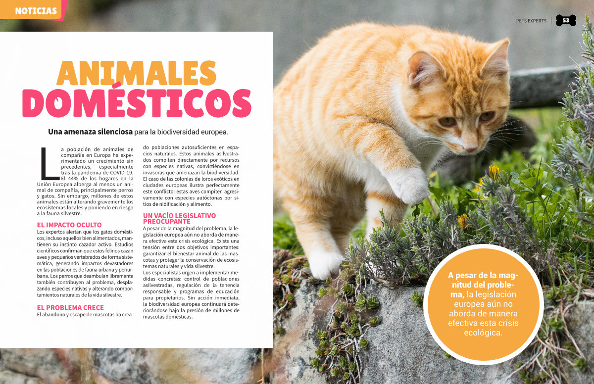 La población de animales de compañía en Europa ha experimentado un crecimiento sin precedentes, especialmente tras la pandemia de COVID-19. El 44 % de los hogares en la Unión Europea alberga al menos un animal de compañía, principalmente perros y gatos. Sin embargo, millones de estos animales están alterando gravemente los ecosistemas locales y poniendo en riesgo a la fauna silvestre.