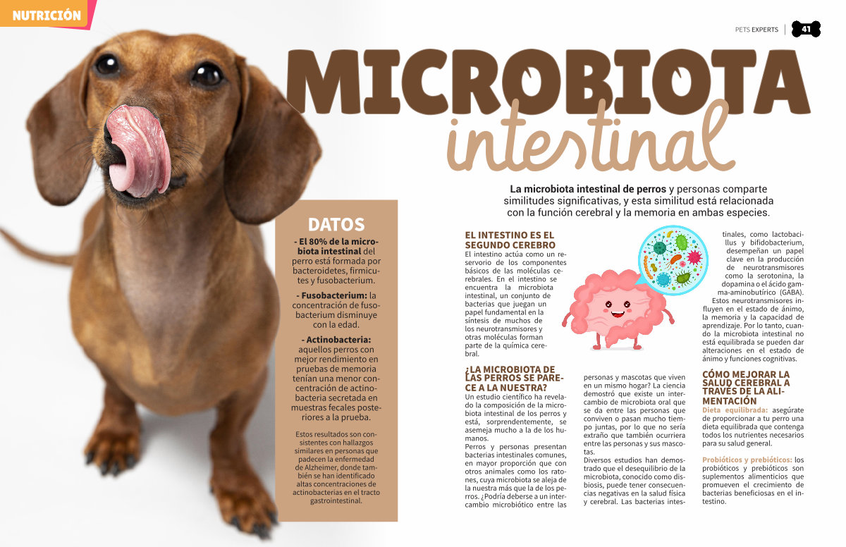 - El 80 % de la microbiota intestinal del perro está formada por bacteroidetes, firmicutes y fusobacterium.