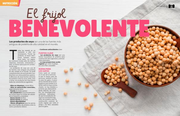 Como suele ser común en el caso de la nutrición , lo que es bueno para las personas , también es bueno para los gatos . A pesar de los intentos de los investigadores para probar la relación entre la soya y la hinchazón , no hay estudios a la fecha que demuestren dicha relación . En cambio , las investigaciones continúan demostrando que los productos de soya son una fuente magnífica de proteína para la construcción corporal , de aceite vegetal que nutre el pelaje y de fibra saludable para los gatos .