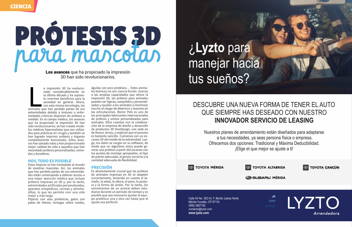 La impresión 3D ha evolucionado considerablemente en la última década y ha supuesto enormes beneficios para la sociedad en general. Ahora, con esta misma tecnología, los animales que han perdido partes de sus extremidades debido a lesiones o enfermedades crónicas disponen de prótesis a medida. En el campo médico, los avances que ha propiciado la impresión 3D han sido revolucionarios: se han creado modelos médicos hiperrealistas que son utilizados para prácticas en cirugía y también se han logrado imprimir prótesis y órganos completamente funcionales. Estos avances han salvado vidas y han proporcionado mejor calidad de vida a aquellos que han necesitado prótesis personalizadas, cómodas y duraderas.