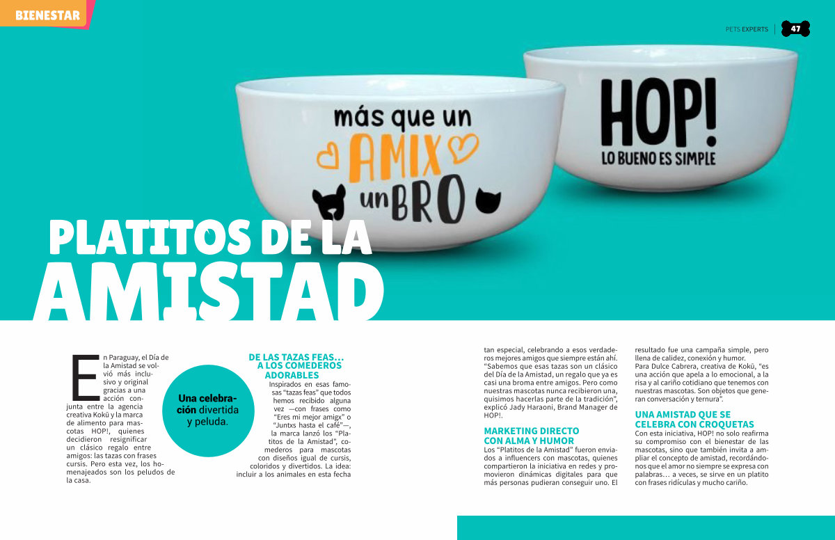 En Paraguay, el Día de la Amistad se volvió más inclusivo y original gracias a una acción conjunta entre la agencia creativa Kokū y la marca de alimento para mascotas HOP!, quienes decidieron resignificar un clásico regalo entre amigos: las tazas con frases cursis. Pero esta vez, los homenajeados son los peludos de la casa.