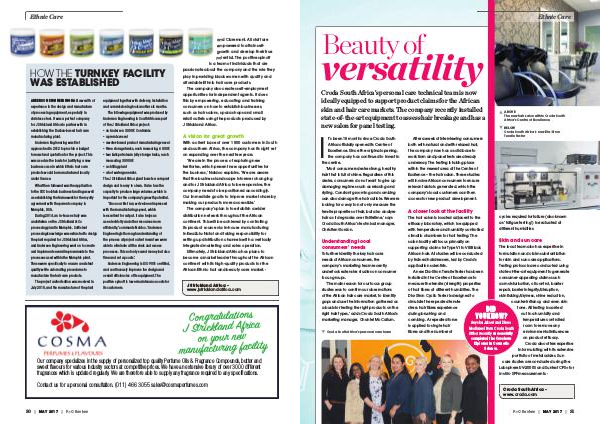 It’ s been 18 months since Croda South Africa offi cially opened its Centre of Excellence. Since the original opening, the company has continued to invest in the centre.
