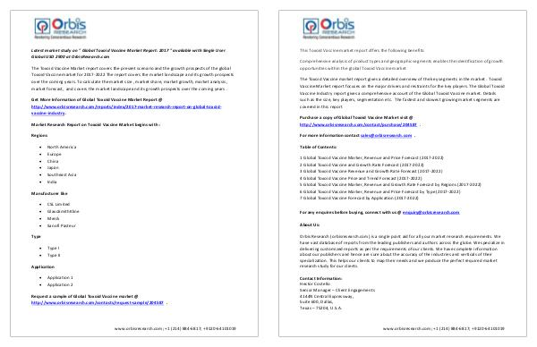 Purchase a copy of Global Toxoid Vaccine Market visit @ http:// www. orbisresearch. com / contact / purchase / 204587.