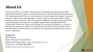 Reports and Data is a market research and consulting company that provides syndicated research reports , customized research reports , and consulting services . Our solutions purely focus on your purpose to locate , target and analyze consumer behavior shifts across demographics , across industries and help client ’ s make a smarter business decision . We offer market intelligence studies ensuring relevant and fact-based research across a multiple industries including Healthcare , Technology , Chemicals , Power , and Energy . We consistently update our research offerings to ensure our clients are aware about the latest trends existent in the market . Reports and Data has a strong base of experienced analysts from varied areas of expertise .