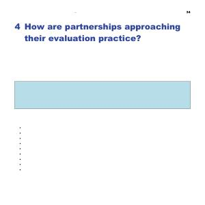 4.1 Introduction This chapter outlines the findings relating to the evaluation and data collection activities being carried out by partnerships . It covers how partnerships are accessing and collecting data and the barriers and facilitators partnerships face in doing so .