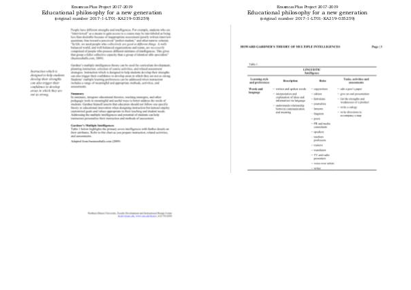 Erasmus Plus Project 2017-2019 Educational philosophy for a new generation (original number 2017-1-LT01-KA219-035259)