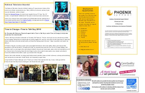 On Thursday 4th February, Phoenix Support held a Time to Talk Day in aid of Time to Change, to help raise