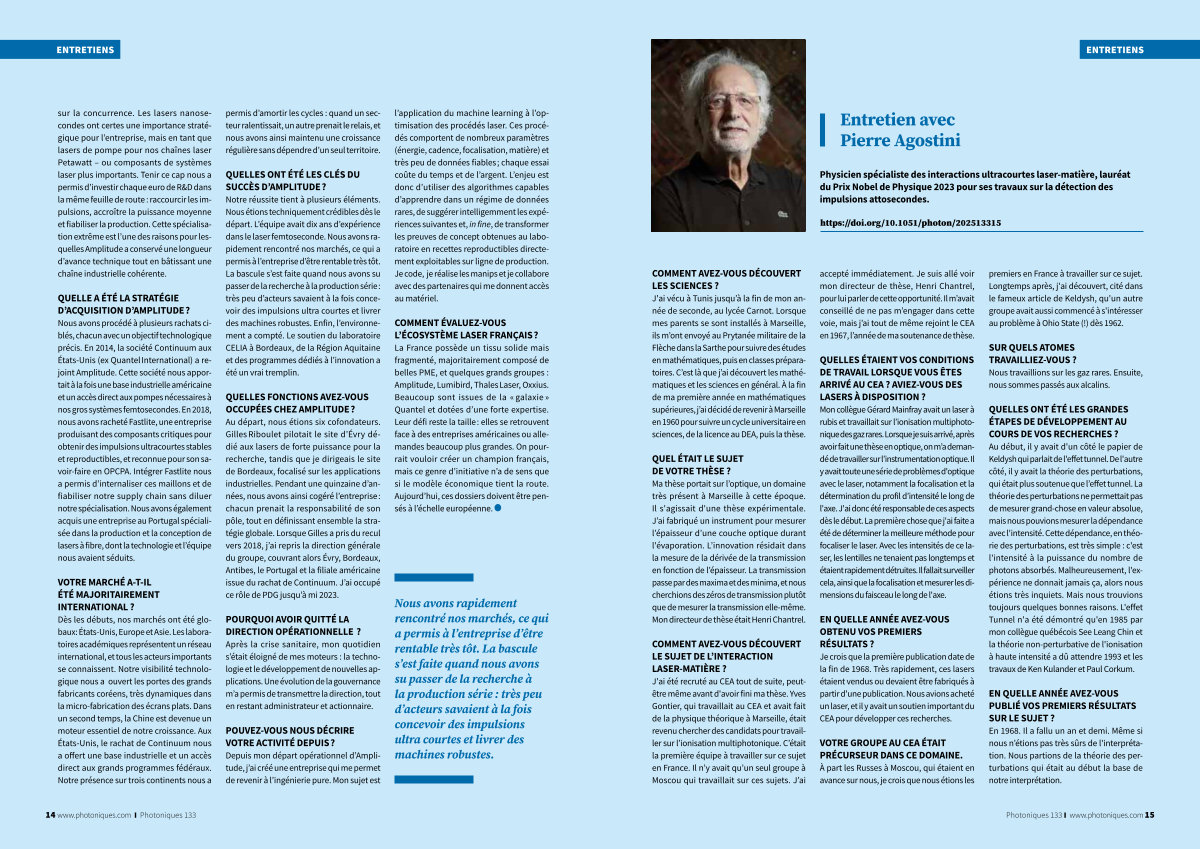 COMMENT AVEZ-VOUS DÉCOUVERT LE SUJET DE L’ INTERACTION LASER-MATIÈRE? J ' ai été recruté au CEA tout de suite, peutêtre même avant d ' avoir fini ma thèse. Yves Gontier, qui travaillait au CEA et avait fait de la physique théorique à Marseille, était revenu chercher des candidats pour travailler sur l’ ionisation multiphotonique. C’ était la première équipe à travailler sur ce sujet en France. Il n’ y avait qu’ un seul groupe à Moscou qui travaillait sur ces sujets. J’ ai accepté immédiatement. Je suis allé voir mon directeur de thèse, Henri Chantrel, pour lui parler de cette opportunité. Il m’ avait conseillé de ne pas m’ engager dans cette voie, mais j’ ai tout de même rejoint le CEA en 1967, l’ année de ma soutenance de thèse.