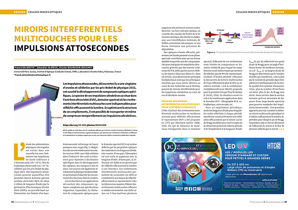 Des optiques à haute efficacité, présentant une bande passante et une phase spectrale contrôlées ainsi qu’ une bonne stabilité temporelle sont des composants clés pour manipuler les impulsions ultracourtes générées par des sources cohérentes EUV / X, telles que les sources HHG ou les lasers à électrons libres [ 1 ]. Dans cet article, nous décrivons les principes fondamentaux ainsi que les principaux résultats que nous avons obtenus au cours de nos recherches sur le développement de miroirs interférentiels pour les impulsions ultrabrèves au cours de ces 20 dernières années.