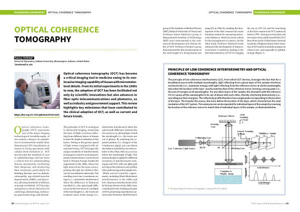 Optical Coherence Tomography PIONEERING EXPERIMENT group at The Institute of Medical Physics( IMP), Medical University of Vienna and Professor James Fujimoto’ s group at Massachusetts Institute of Technology( MIT) were instrumental to the commercial development and clinical utility of OCT. Professor Fercher’ s group demonstrated the first measurement of the axial length of a living human eye using LCI in 1986 [ 2 ], enabling the development of the first commercial ocular biometry system for measuring intraocular distances, which has been critical for the management of cataract. On the other hand, Professor Fujimoto’ s team advanced the development of femtosecond lasers in medicine, leading to the first demonstration of OCT for imaging the eye in 1991 [ 1 ] and the launching of the first commercial OCT system by Zeiss in 1996. Among several prizes, the two teams were jointly awarded the 2017 Russ Prize by the United States National Academy of Engineering for their invention of OCT and its tremendous impact in clinical care, and especially in ophthalmology( Figure 1).