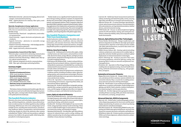 • Finisar Sweden AB( Coherent) – Designs tunable lasers and photonic integrated circuits( PICs) for ultra-high-speed optical communications. Expertise in InP wafer processes enables 100 + Gbit / s optical transceivers, crucial for data centers and 5G / 6G backbone networks.