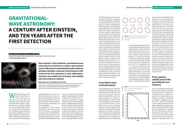 With Virgo joining in 2017, the LIGO and Virgo detectors and about 70 telescopes all around the world allowed the first multi-messenger event( GW170817), tightly constraining the speed of gravity, revealing r-process nucleosynthesis in a kilonova, and introducing“ standard siren” cosmology. By September 2025 the network, including now also the Japanese KAGRA, has reported nearly 300 candidate gravitational-wave sources( more than 200 published), enabling population studies of black-hole masses and spins, evidences of intermediate-mass black holes, and mixed systems. Here we review the historical developments, key technological milestones, and science highlights. On September 14, 2025, we have celebrated the tenth anniversary of the first detection of gravitational waves( the event called GW150914). Predicted by Albert Einstein in 1916 through the linearization of his general relativity field equations, these waves are oscillations of spacetime geometry that propagate at the speed of light and are emitted by the acceleration of asymmetric compact systems— such as a binary black hole system. Gravitational waves had a difficult beginning: Einstein himself, in his 1916 article, wrote that in all possible situations, their amplitude would be practically zero [ 1 ]. He was clearly aware of the challenge of deforming spacetime, a medium that is elastic yet extremely rigid, and even more, of making it vibrate. Of course,