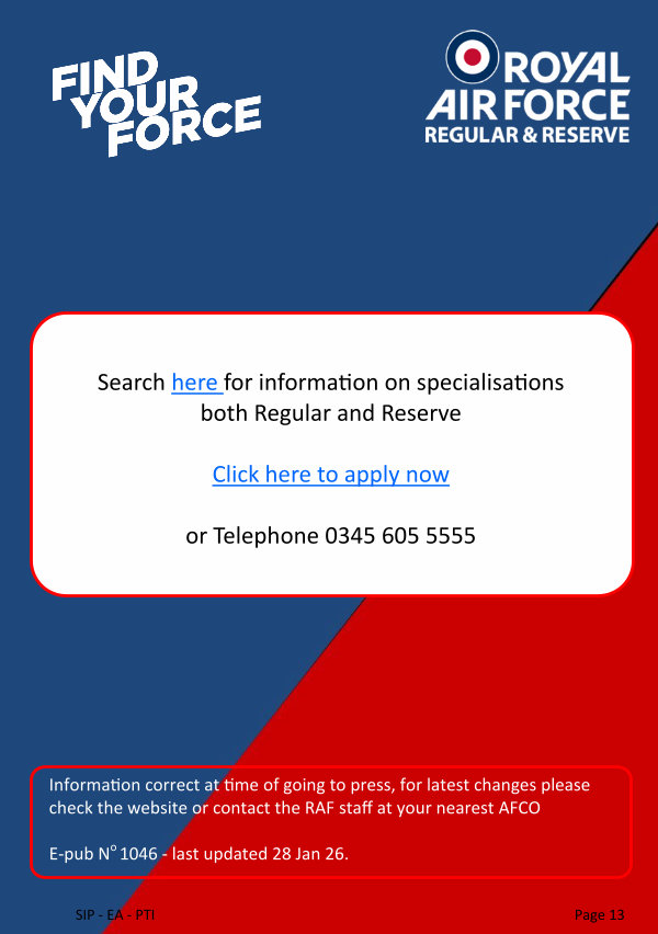Information correct at time of going to press, for latest changes please check the website or contact the RAF staff at your nearest AFCO