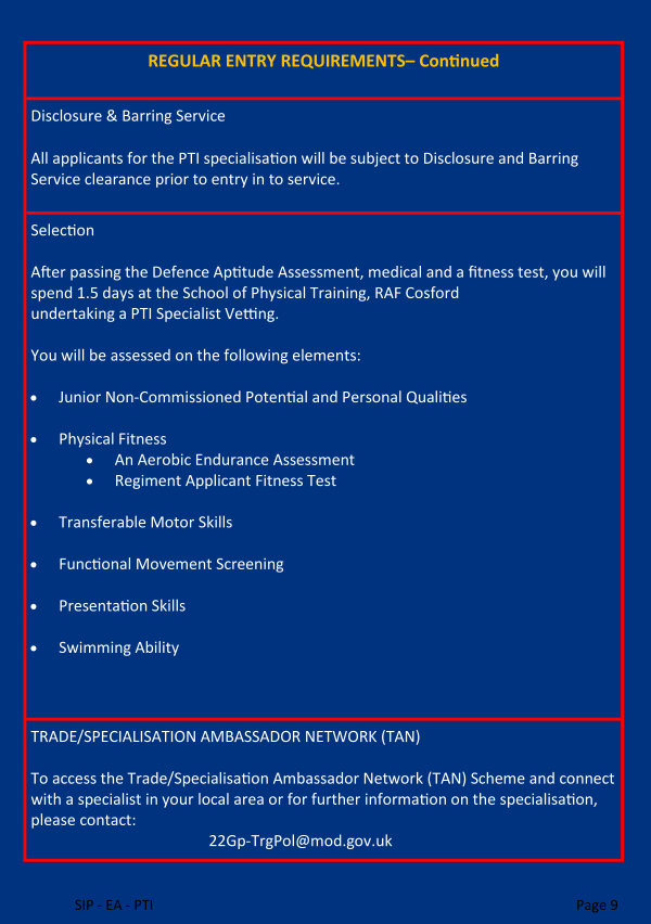 All applicants for the PTI specialisation will be subject to Disclosure and Barring Service clearance prior to entry in to service.