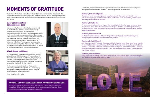 Each month , physicians and advanced practice practitioners at Renown receive recognition through patient testimonials . Here are a few highlights from recent months .