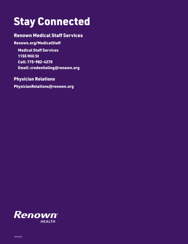 1155 Mill St � Call: 775-982-4270 � Email: credentialing @ renown. org