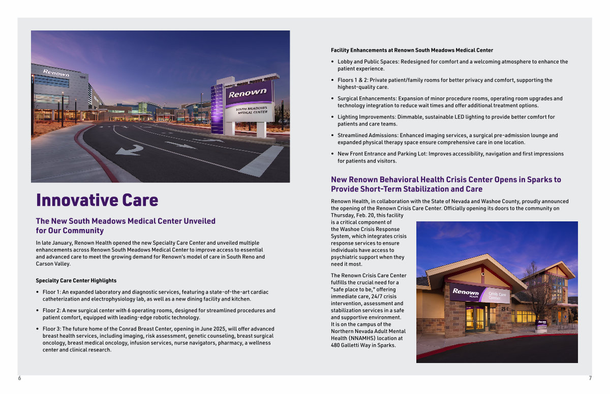 In late January, Renown Health opened the new Specialty Care Center and unveiled multiple enhancements across Renown South Meadows Medical Center to improve access to essential and advanced care to meet the growing demand for Renown’ s model of care in South Reno and Carson Valley.