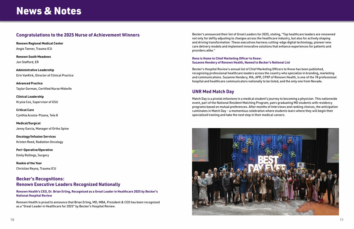 Becker’ s Recognitions: Renown Executive Leaders Recognized Nationally