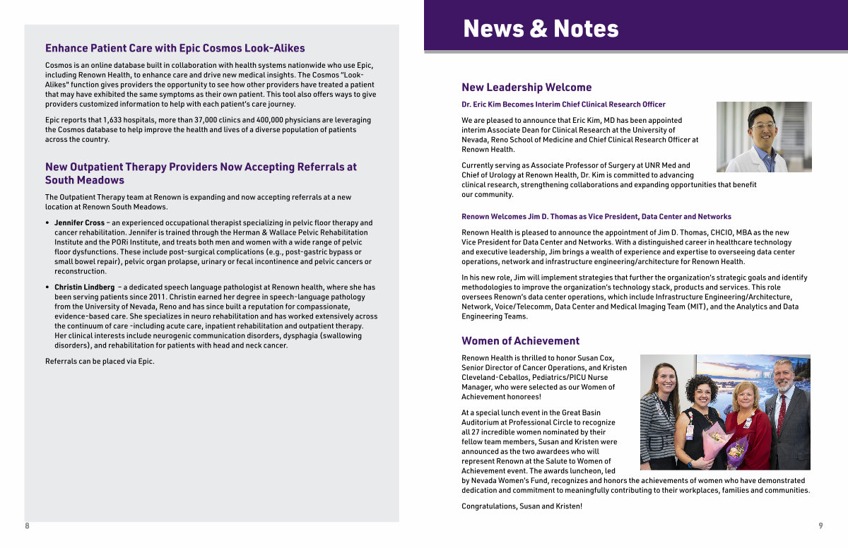 We are pleased to announce that Eric Kim, MD has been appointed interim Associate Dean for Clinical Research at the University of Nevada, Reno School of Medicine and Chief Clinical Research Officer at Renown Health.