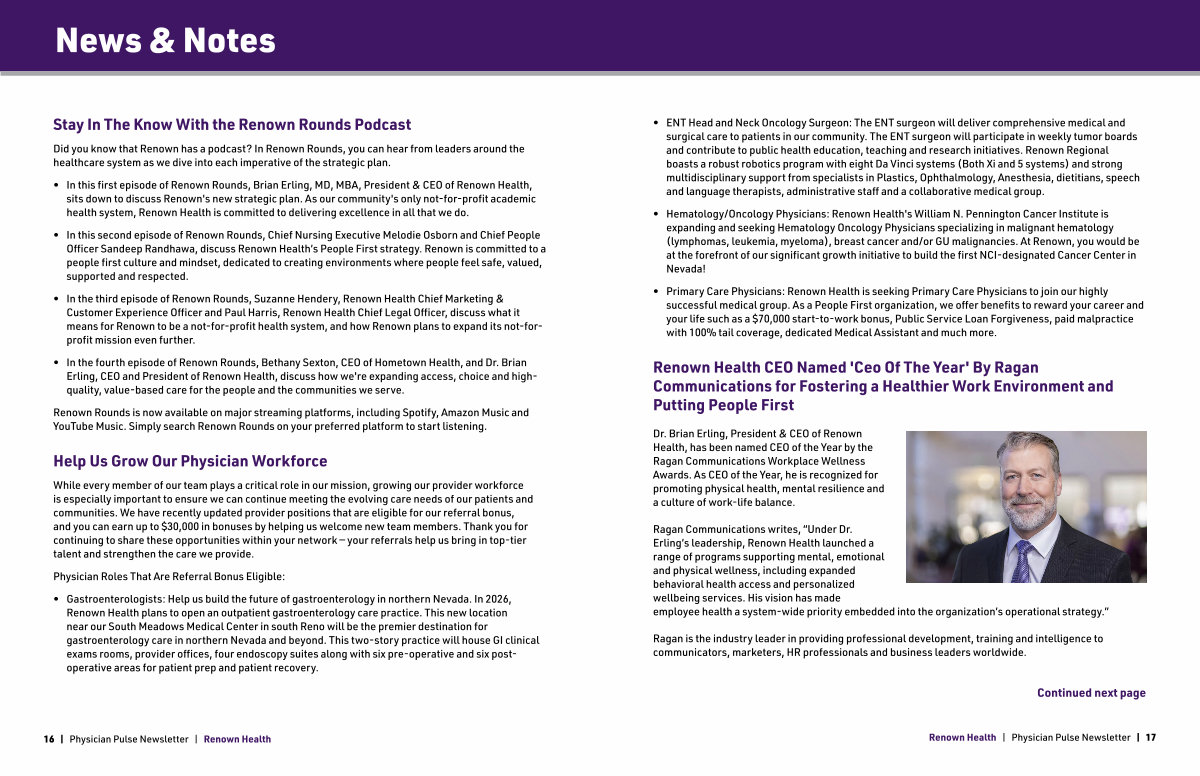 Did you know that Renown has a podcast? In Renown Rounds, you can hear from leaders around the healthcare system as we dive into each imperative of the strategic plan.