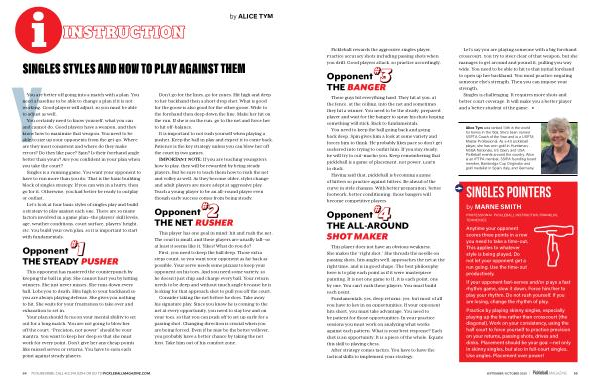 Practice by playing skinny singles, especially playing up the line rather than crosscourt( the diagonal). Work on your consistency, using the half court to force yourself to practice precision on your returns, passing shots, drives and dinks. Placement should be your goal— not only in skinny singles, but also in full-court singles. Use angles. Placement over power!