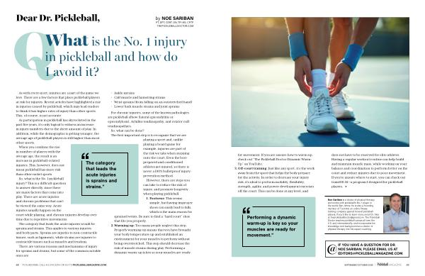 for movement. If you are unsure how to warm up, check out“ The Pickleball Doctor Dynamic Warm- Up” on YouTube.