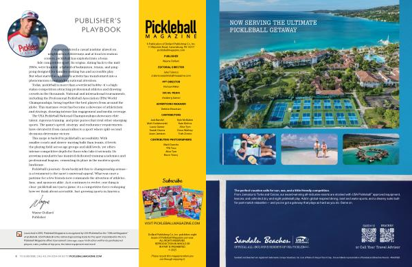 Dollard Publishing Co., Inc. publishes eight issues of Pickleball Magazine per year. ALL RIGHTS RESERVED. REPRODUCTION IN WHOLE OR IN PART IS PROHIBITED. © 2025