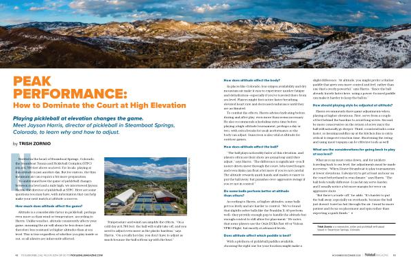 Playing pickleball at elevation changes the game. Meet Jayson Harris, director of pickleball in Steamboat Springs, Colorado, to learn why and how to adjust.