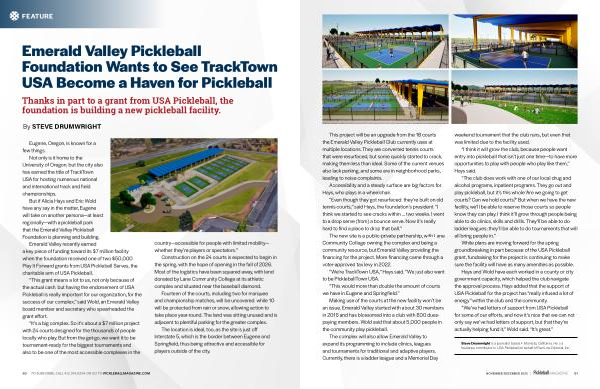 But if Alicia Hays and Eric Wold have any say in the matter, Eugene will take on another persona— at least regionally— with a pickleball park that the Emerald Valley Pickleball Foundation is planning and building.