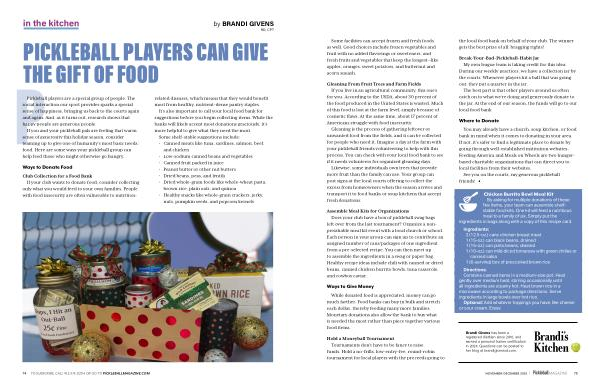 Does your club have a box of pickleball swag bags left over from the last tournament? Organize a nonperishable meal kit event with a local church or school. Each person in your group can sign up to contribute an assigned number of cans / packages of one ingredient from a pre-selected recipe. You can then meet up to assemble the ingredients in a swag or paper bag. Healthy recipe ideas include chili with canned or dried beans, canned chicken burrito bowls, tuna casserole, and cowboy caviar.