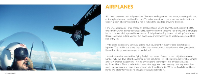 For a watch company, I once chased an aerobatic team up and down the east coast of the U.S.