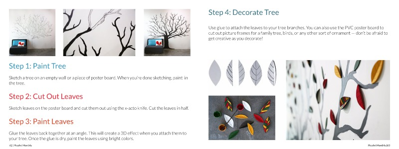 Use glue to attach the leaves to your tree branches. You can also use the PVC poster board to