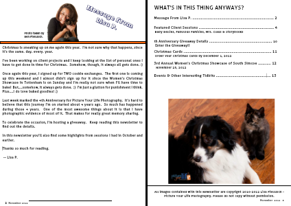 All images contained with this Newsletter are copyright 2010-2012 Lisa Piellusch - Picture Your Life Photography. Please do not copy without permission.