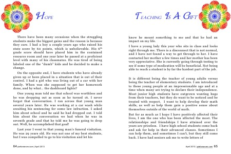 There have been many occasions when the struggling students make the biggest gains and the reason is because they care. I had a boy a couple years ago who raised his state score by 60 points, which is unbelievable. His 6 th grade score should have placed him in the contained resource room and one year later he passed at a proficient level with many of his classmates. He was tired of being labeled one of the“ dumb” kids and he decided to make a change.