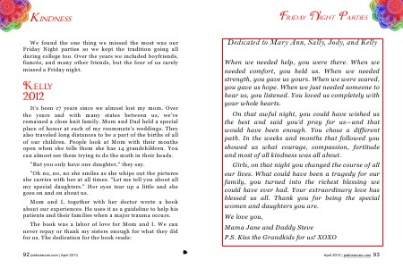 Girls, on that night you changed the course of all our lives. What could have been a tragedy for our family, you turned into the richest blessing we could have ever had. Your extraordinary love has blessed us all. Thank you for being the special women and daughters you are.