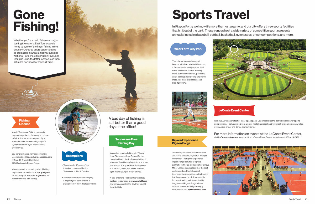 Whether you’ re an avid fisherman or just testing the waters, East Tennessee is home to some of the finest fishing in the country. Our area offers opportunities to drop a line in Great Smoky Mountains National Park, the Little Pigeon River, and Douglas Lake, the latter located less than 20 miles northeast of Pigeon Forge.