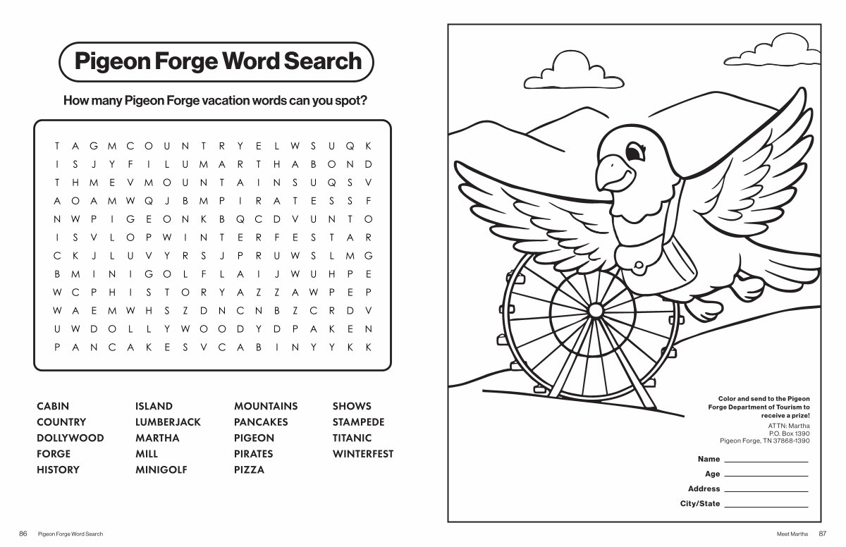 Color and send to the Pigeon Forge Department of Tourism to receive a prize!