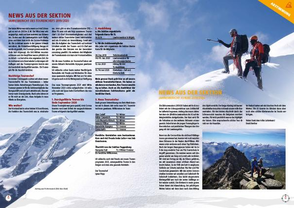 Ich wünsche euch viel Freude am neuen Tourenprogramm 2021 , unvergessliche Touren in den Bergen und stets eine gesunde Heimkehr .