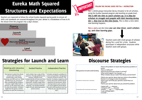 Teachers are expected to follow the school Eureka Squared pacing guide to ensure all skills and standards are covered throughout the year. Below is a breakdown of how to fit the lesson from the program into a day's lesson.