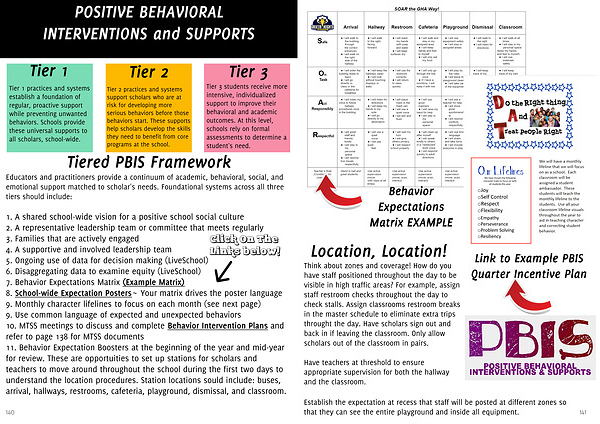 11. Behavior Expectation Boosters at the beginning of the year and mid-year for review. These are opportuities to set up stations for scholars and teachers to move around throughout the school during the first two days to understand the location procedures. Station locations sould include: buses, arrival, hallways, restrooms, cafeteria, playground, dismissal, and classroom.